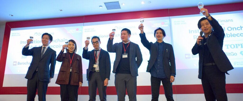株式会社DeFimans(所在地:東京都港区、代表取締役:小野 暢思・佐藤 太思、以下「DeFimans」)は、Japan Fintech Week 2026期間中の公式連携イベントとして、日本市場での事業展開を本格化させる国内外プロジェクトと、国内企業の意思決定層・実務責任者が直接つながる場を提供することを目的とした「Institutional Onchain – RWA & Stablecoins」を2026年3月3日(火)に開催しました。