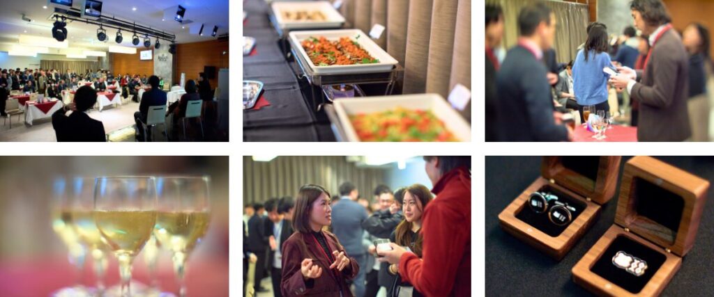 後半は立食形式のネットワーキングが行われ、フリーフロードリンクやブッフェを楽しみながら、国内外の参加者が積極的に交流。