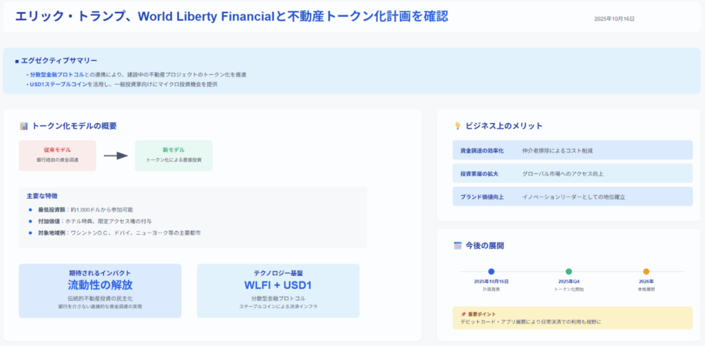 エリック・トランプ、World Liberty Financialと不動産トークン化計画を確認