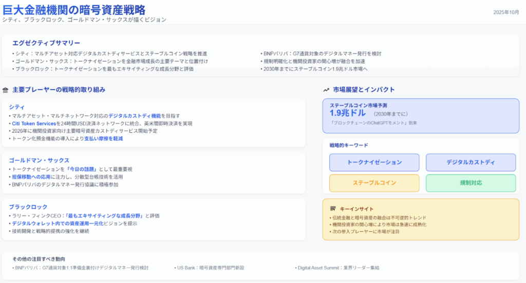 DeFimans注目記事ピックアップ:巨大金融機関の暗号資産戦略:シティ、ブラックロック、ゴールドマン・サックスが描くビジョン